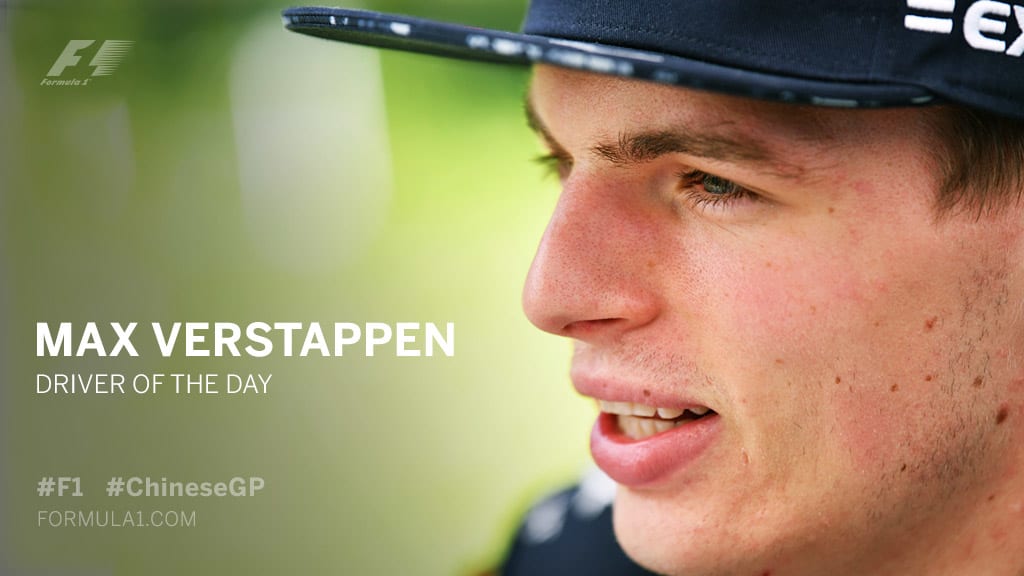 A charge from 16th on the grid to third at the flag, holding off team mate Daniel Ricciardo in the closing laps, was more than enough for the young Dutchman to win your plaudits in Shanghai.